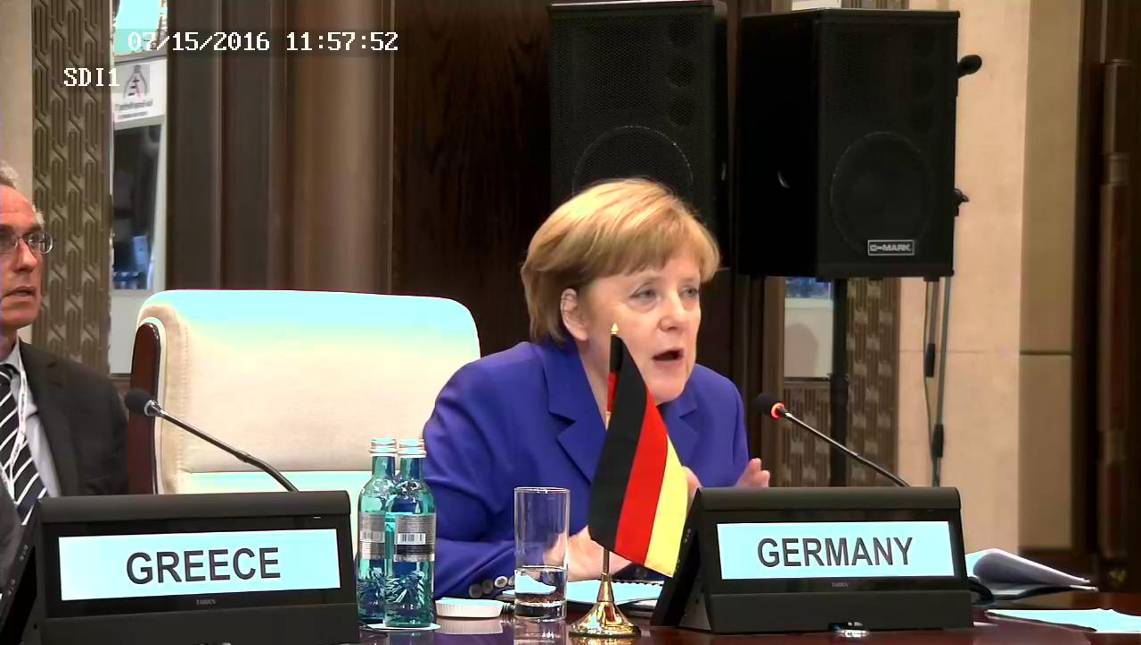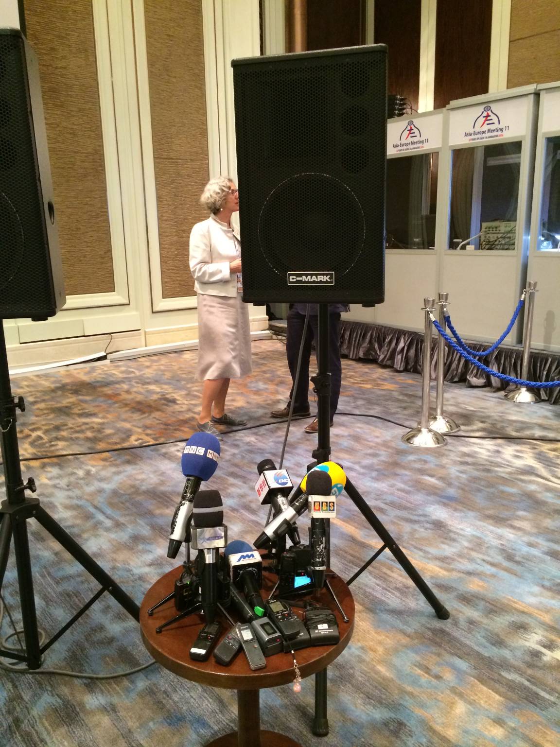 German Chancellor Angela Merkel speaking at the ASEM summit