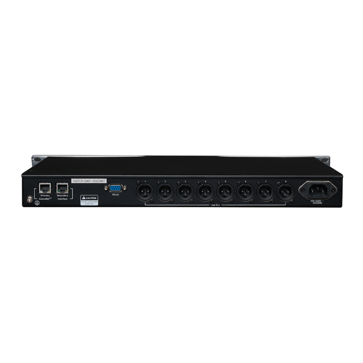DRB-8A | Has 8 analog audio output ports and 2 CobraNet ports. No input ports. It can process 8 audio channels from the CobraNet signal and output the processed signals to its audio ports |