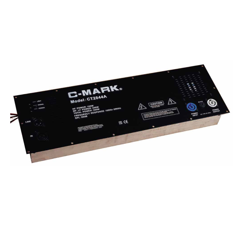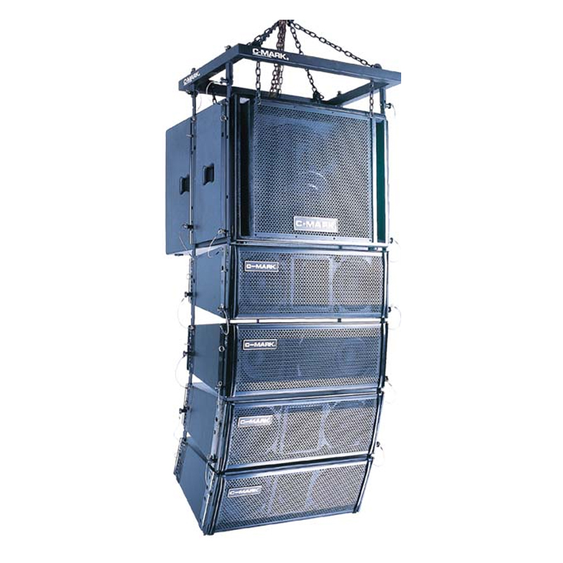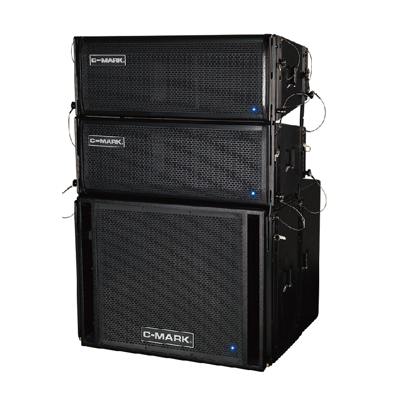 C-MARK CT2844A, CT1801A active line array, powered by built-in digital power amplifier, feature high efficiency, best sound, safe protection, incredible compatibility of electromagnetism and open choices of 110VAC&220VAC power supply. Suspension of the line array allows up to 0-12°of curvature adjustment, covering area thus wider. Stable, light and simple installation.