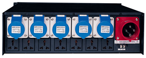 It provides totally 12ch power output, 5ch AC 40A/220V/50Hz and 7ch AC 15A/220V/50Hz. Power output can be opened and closed with a certain logical order, and work with various state LED monitor.