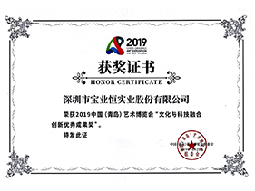 榮獲2019中國(青島)藝術博覽會“文化與科技融合創新優秀成果獎”