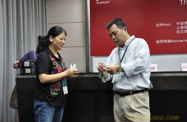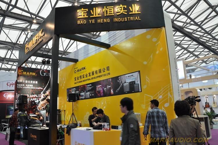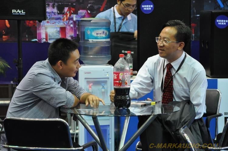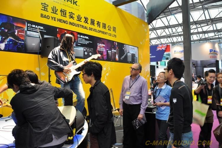 圖3:國內外參展商駐足欣賞我司新型樂器音箱的優美音色