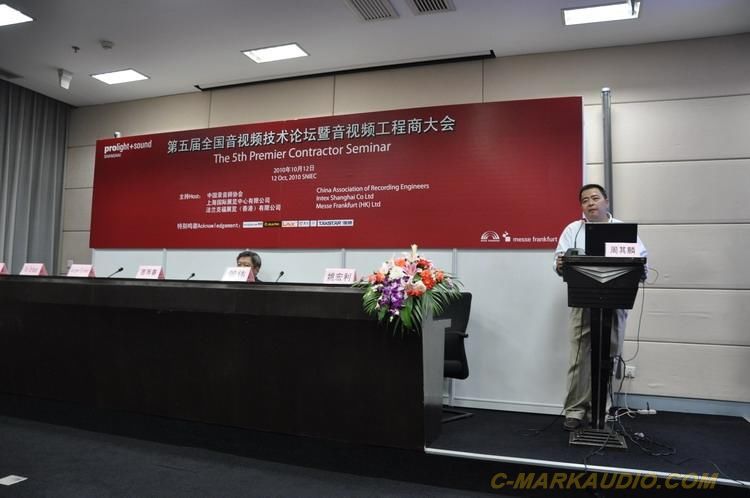2010年10月12日,第五屆全國(guó)音視頻技術(shù)論壇暨音視頻工程商大會(huì)在上海新國(guó)際博覽中心W2館M9會(huì)議室舉行,來(lái)自各地的音響燈光專(zhuān)業(yè)觀眾及經(jīng)銷(xiāo)商、工程商濟(jì)濟(jì)一堂,本次論壇是由上海國(guó)際專(zhuān)業(yè)燈光音響展覽會(huì)組委會(huì)和中國(guó)錄音師協(xié)會(huì)共同舉辦的。