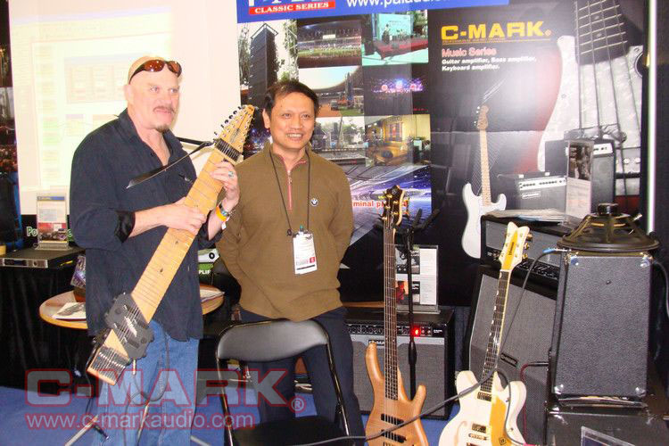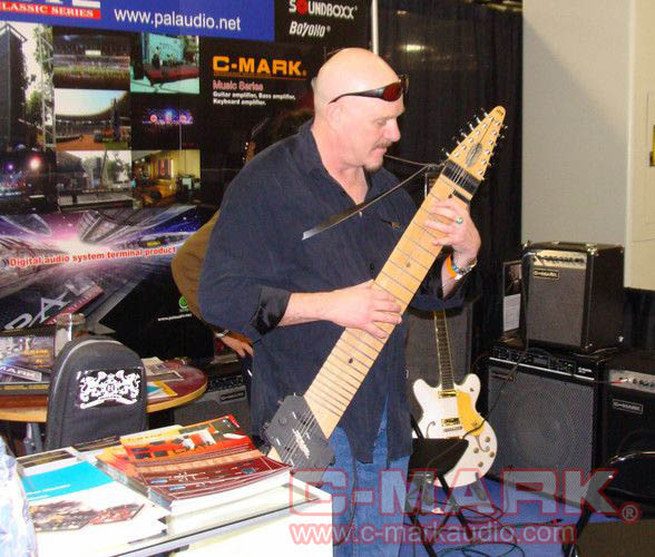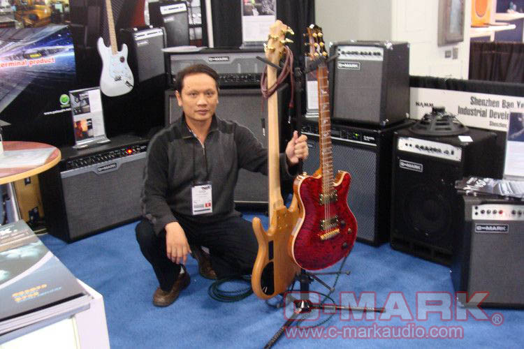 美國著名的吉他手Mr. Steve Adelso正在用我們的吉他音箱演奏(很多人圍觀)