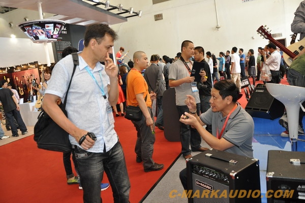 樂器館展臺(tái)前,來自各地的樂手和客戶代表紛紛上臺(tái)試奏,親身體驗(yàn)寶業(yè)恒C-MARK電聲樂器音箱的獨(dú)特音色魅力,有許多琴行愿做代理,并紛紛留下名片和聯(lián)系方式,并對(duì)寶業(yè)恒新推出的幾款產(chǎn)品充滿期待。