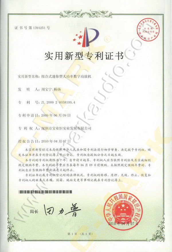我司產品中,采用此項專利技術設計生產的部分產品有:GA200數字迷你功放,GA300數字迷你功放,GA400數字迷你功放,GA500數字迷你功放